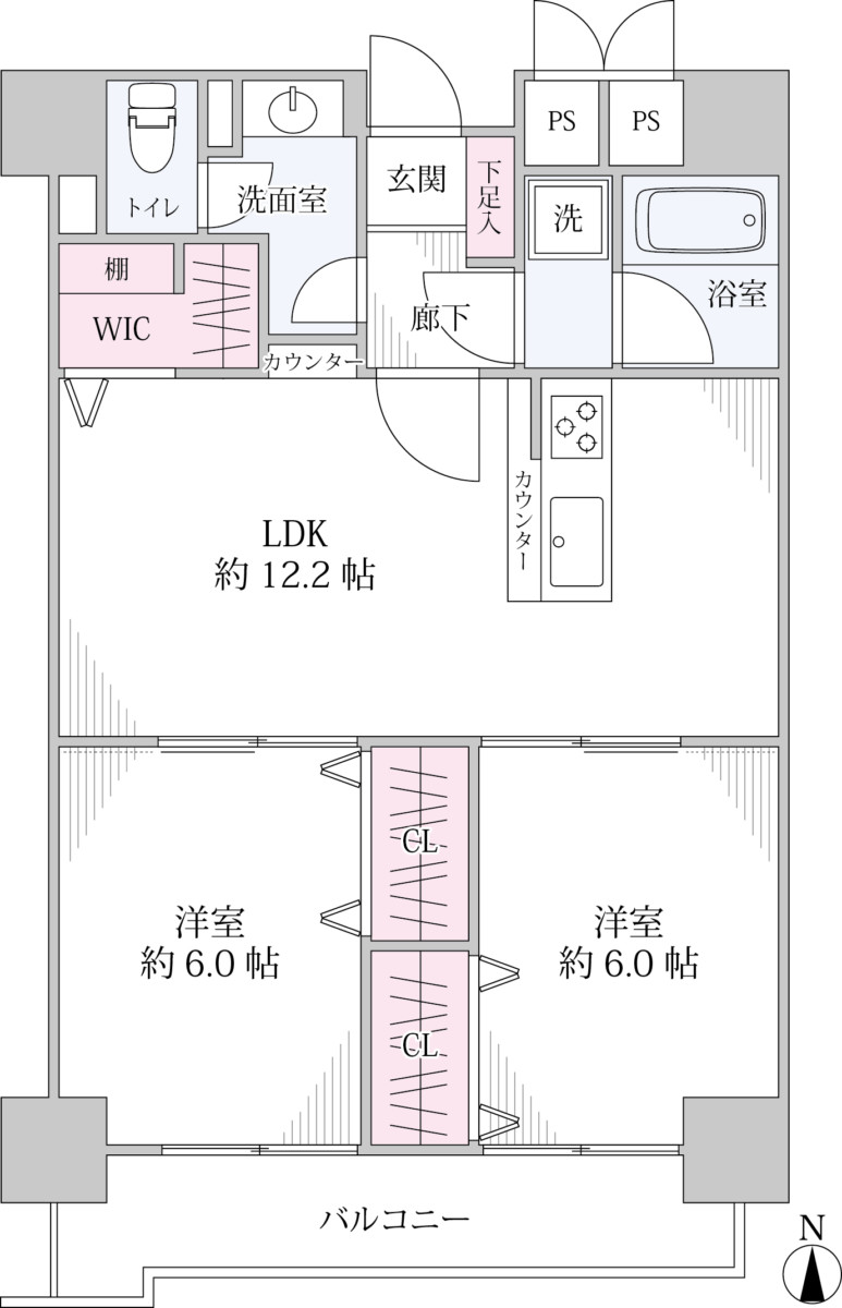 所在階:4階部分 専有面積:60.80㎡ 間取り:2LDK+WIC 取引形態:売主
