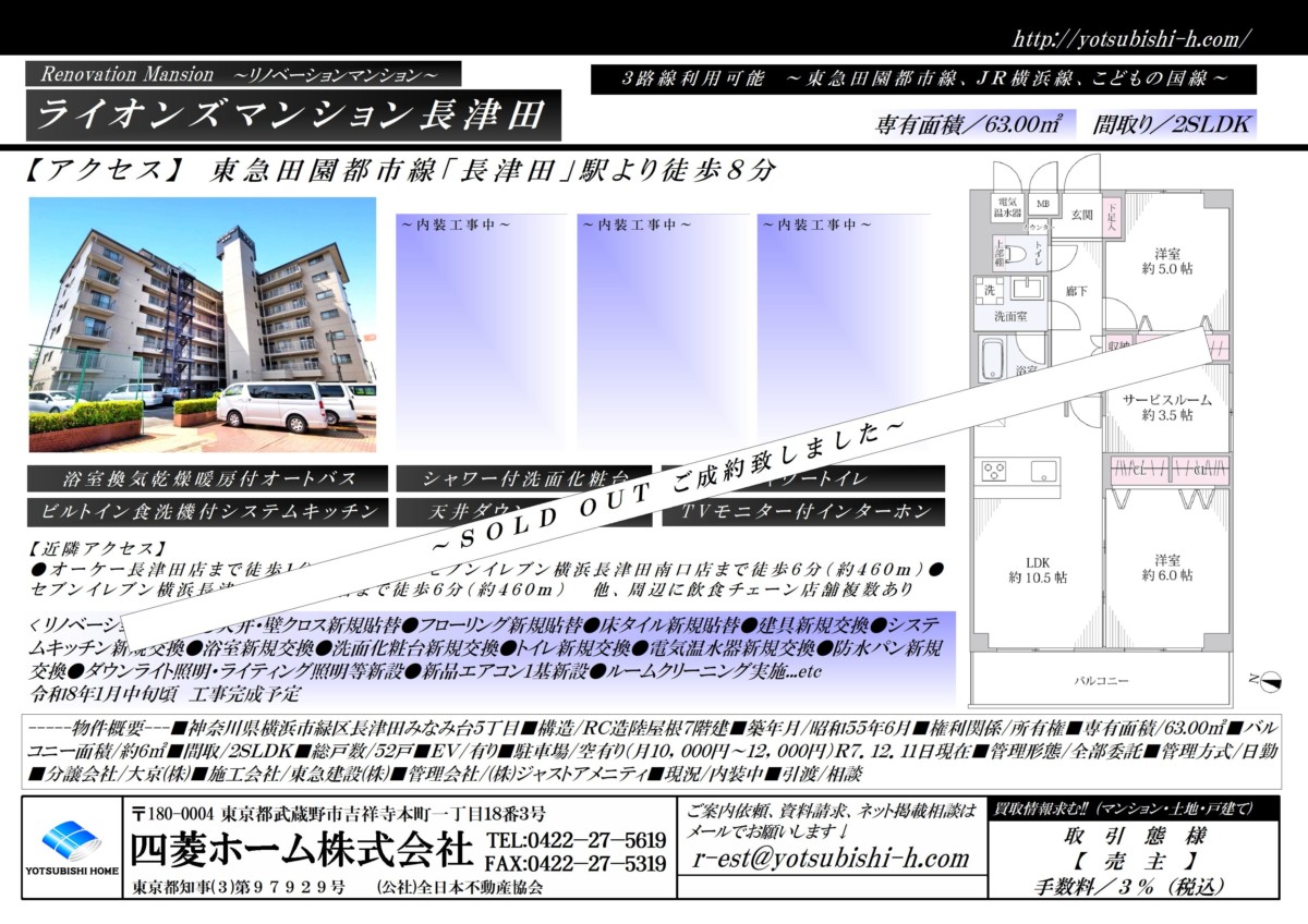 【成約御礼】 ライオンズマンション長津田